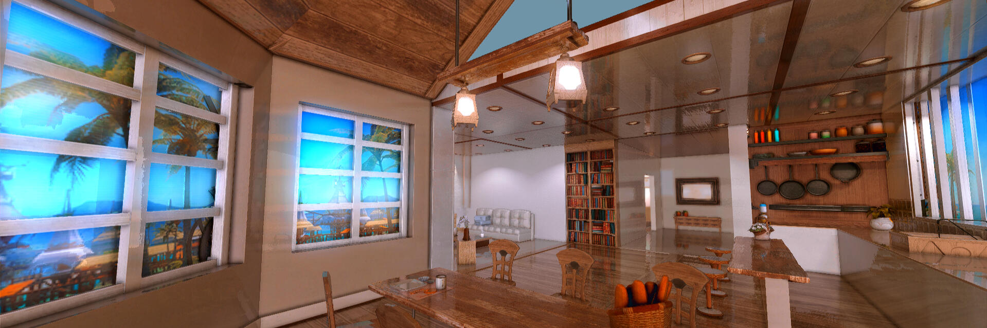 The mini mini mini penthouse is what happens when you squeeze the Pearl Penthouse (M) into a mere 100 item slots for an fc room/apartment! It might be a bit small, but hey, at least there's no need to deal with that pesky housing market now!Features a pool, dining area, and bedroom.